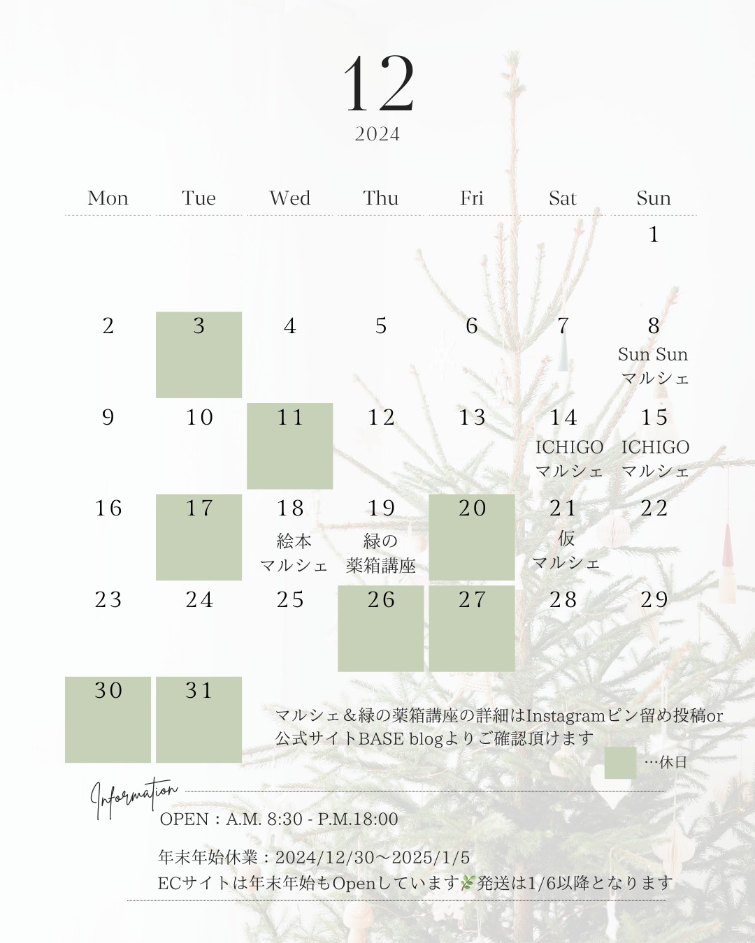 2024年も残り1ヶ月となりました!最終月もマルシェやワークショップなど精力的に活動していきます🌿